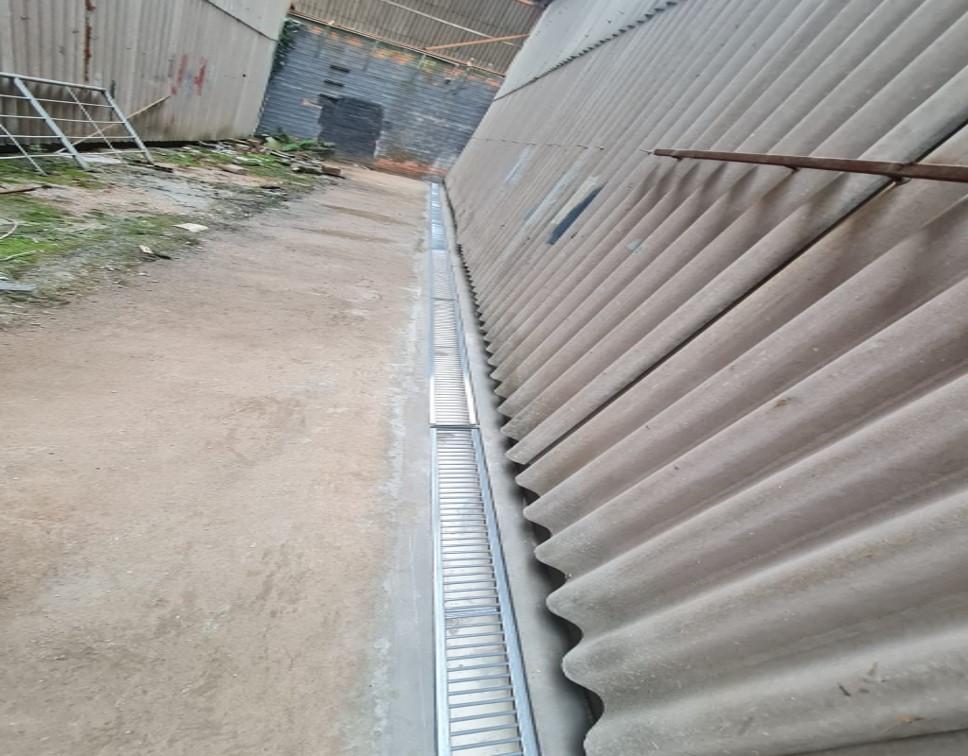 - Execução de canaleta em concreto e instalação de grelha metálica;