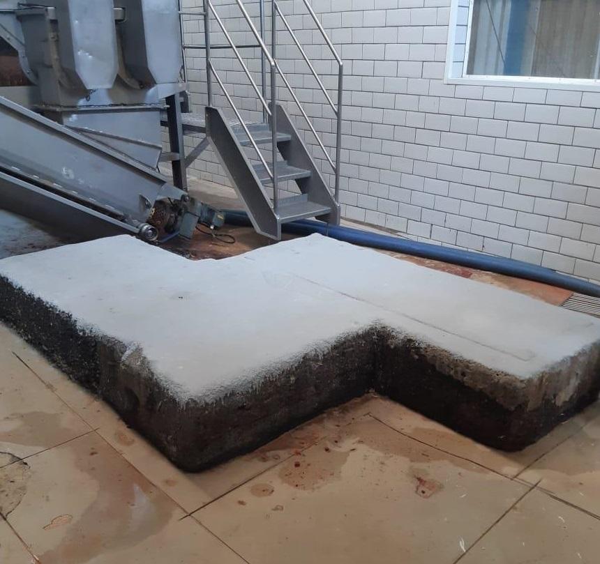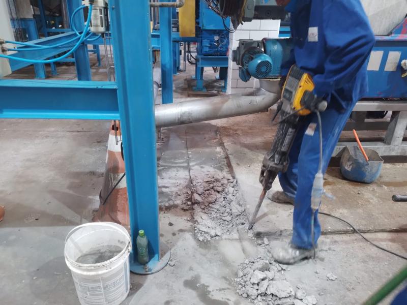 - Remoção de base inativa, reconstituição do piso com graute secagem rápida e posterior aplicação de revestimento uretano argamassado;
