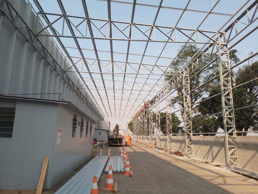- Cobertura e fechamentos laterais com telhas trapezoidais;