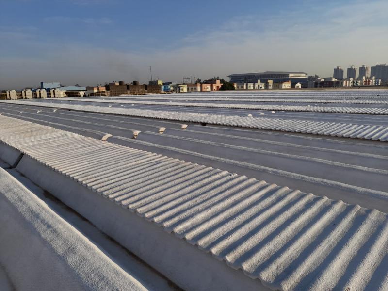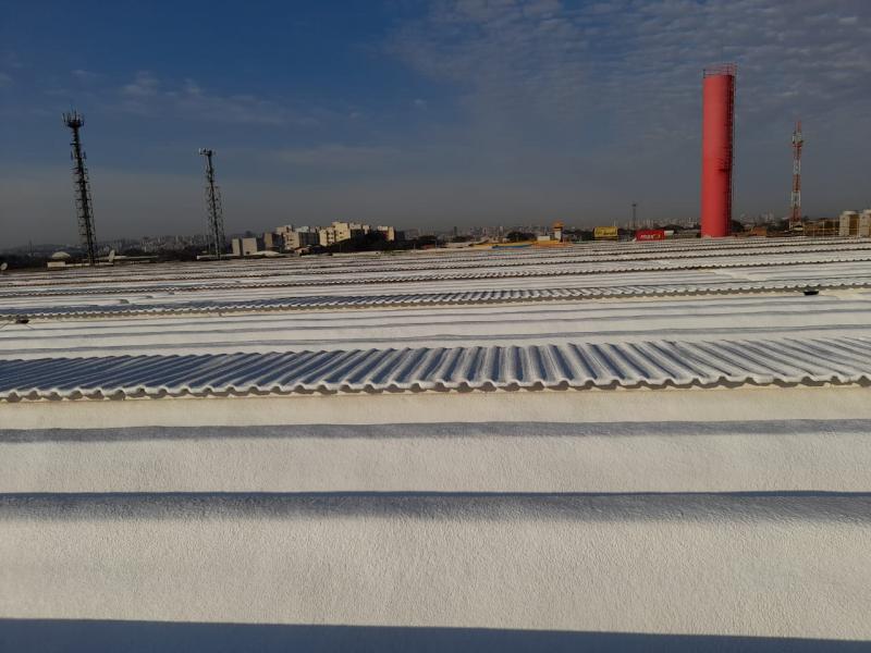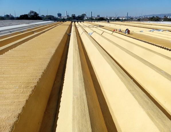 - Cobertura 7.000m² ( Limpeza da área do salão de vendas / Limpeza das calhas em concreto para receber isolamento térmico / Aplicação de isolamento térmico sobre a cobertura do salão de vendas (calhetão, telhas metálicas e calhas) / Pintura de proteção contra UV na cor branca.