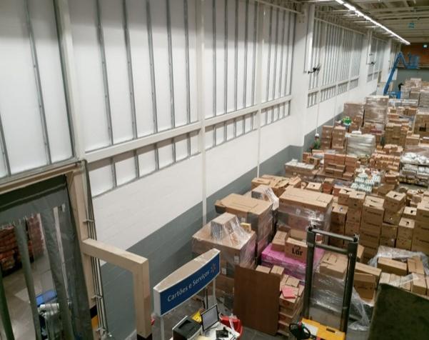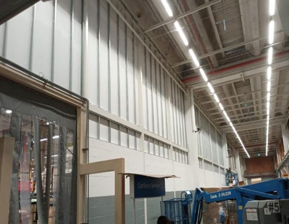 - Parede divisória salão de vendas e depósito fundos da loja (Estrutura metálica / Alvenarias de blocos grauteados / Parede de gesso acartonado);