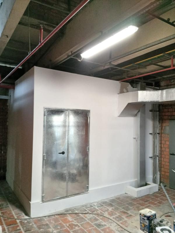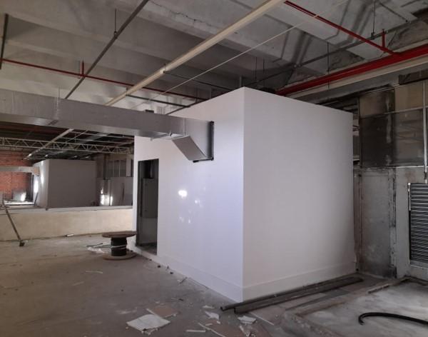 - Sala de máquinas para ar condicionado ( Piso em concreto com impermeabilização / Base para equipamentos / Paredes e forro em gesso / Porta estanque);