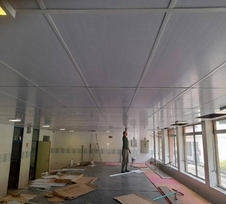 - Fornecimento e instalação de forro PVC modular 625mm x 1250mm (incluindo perfis / pendural / cantoneiras e outros acessórios);