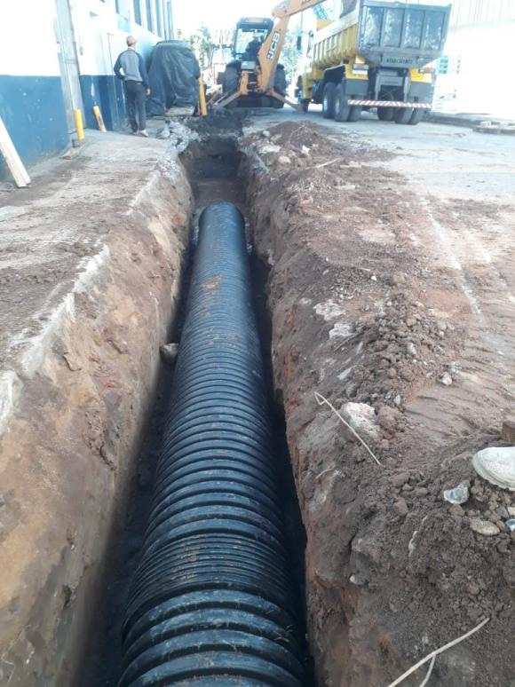 A obra trata-se de uma readequação na tubulação do flotador até a calha, onde foram feitos 180m de tubulação PEAD 500mm.