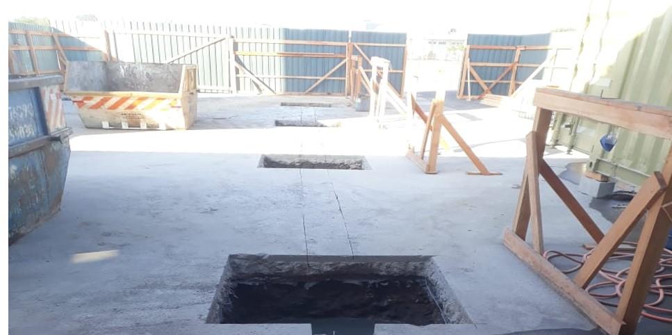 - Isolamento da área com tapumes e proteções;