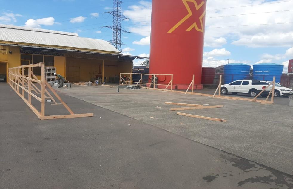 - Canteiro de obras provisório, almoxarifado e vestiários;