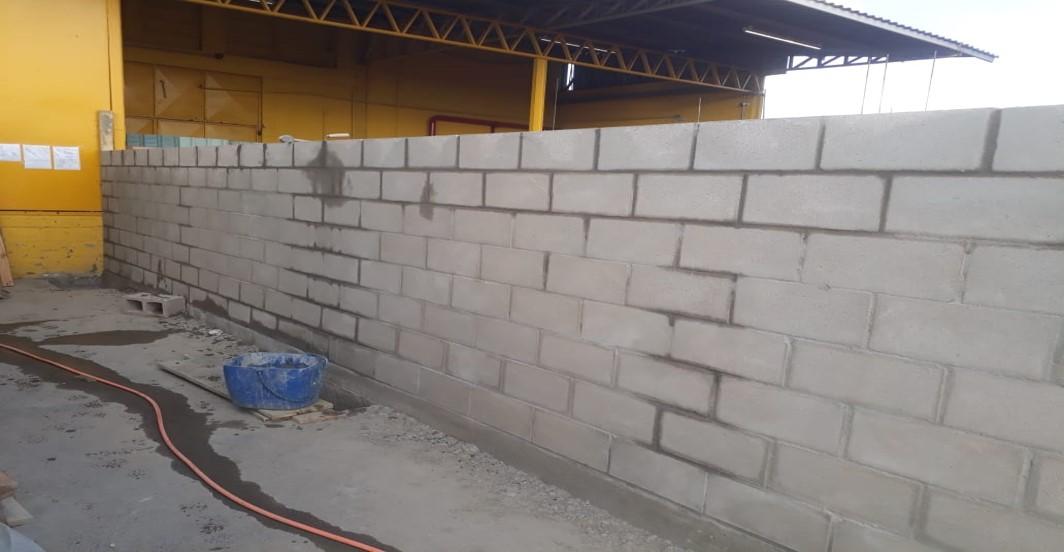 - Execução de fiadas com bloco do tipo canaleta canaleta grauteada e armada com treliças no perímetro das paredes;