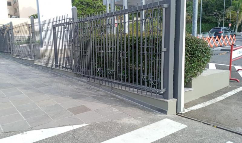 - Tratamento e recuperação dos elementos de vedação e segurança de todo o entorno do estacionamento (portões e gradis);
