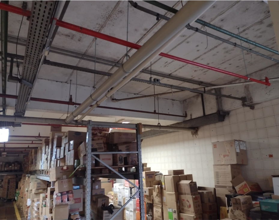 - Adequação rede de sprinklers térreo (loja), depósito, recebimento e mezanino contemplando: Tubulações de aço carbono, Conexões, Material para suporte, Bicos de sprinklers pendentes, Bicos de sprinklers upright, Bicos de sprinklers pendentes especiais para câmaras;