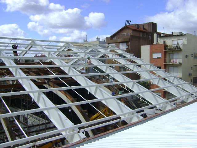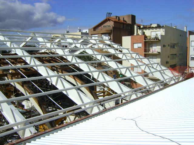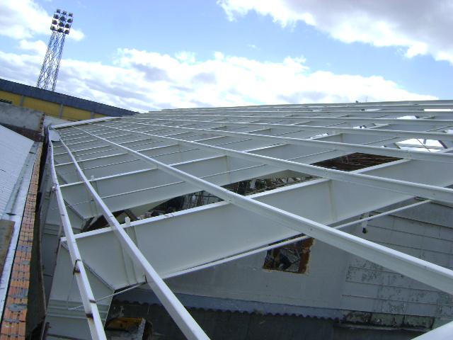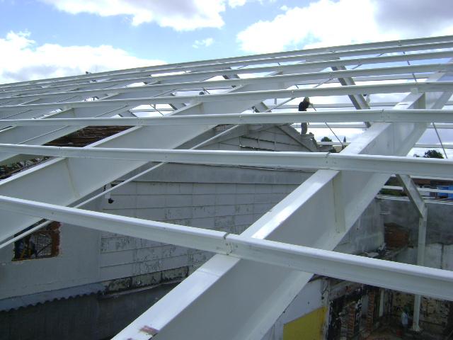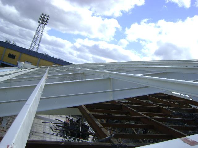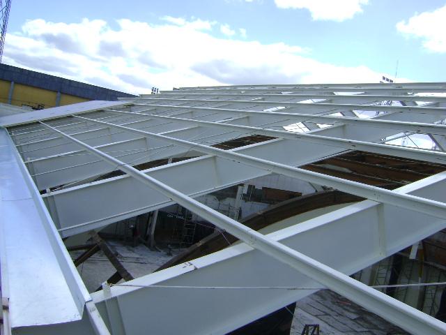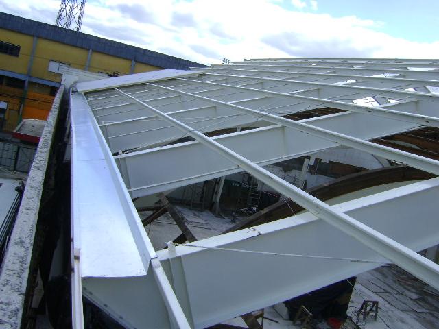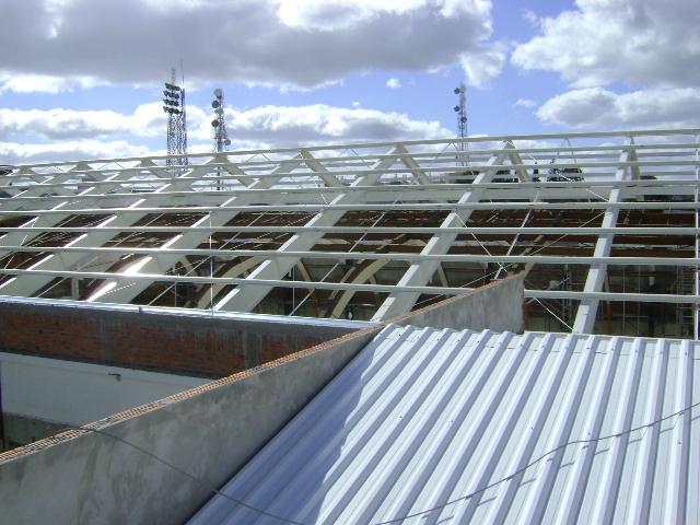 - Fornecimento e colocação de estrutura metálica do telhado